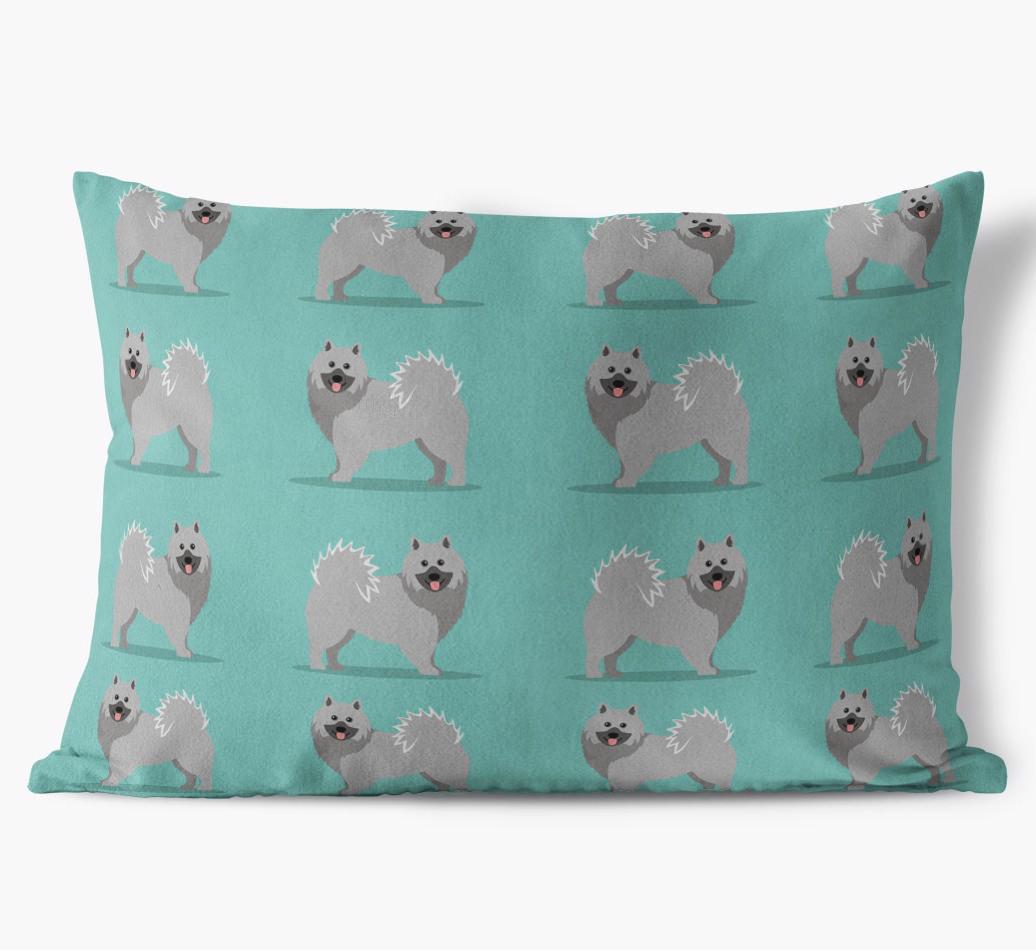 Featuring a pattern of our pawsome Keeshond icons, this pillow really is wagnificent!