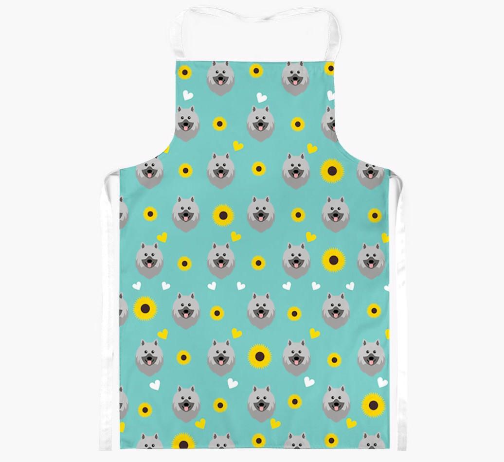 This apron has a delightful sunflower and heart pattern, and best of all - it's personalized with Keeshond's face too! This cute and colorful apron is sure to put a smile on every dog lover's face.