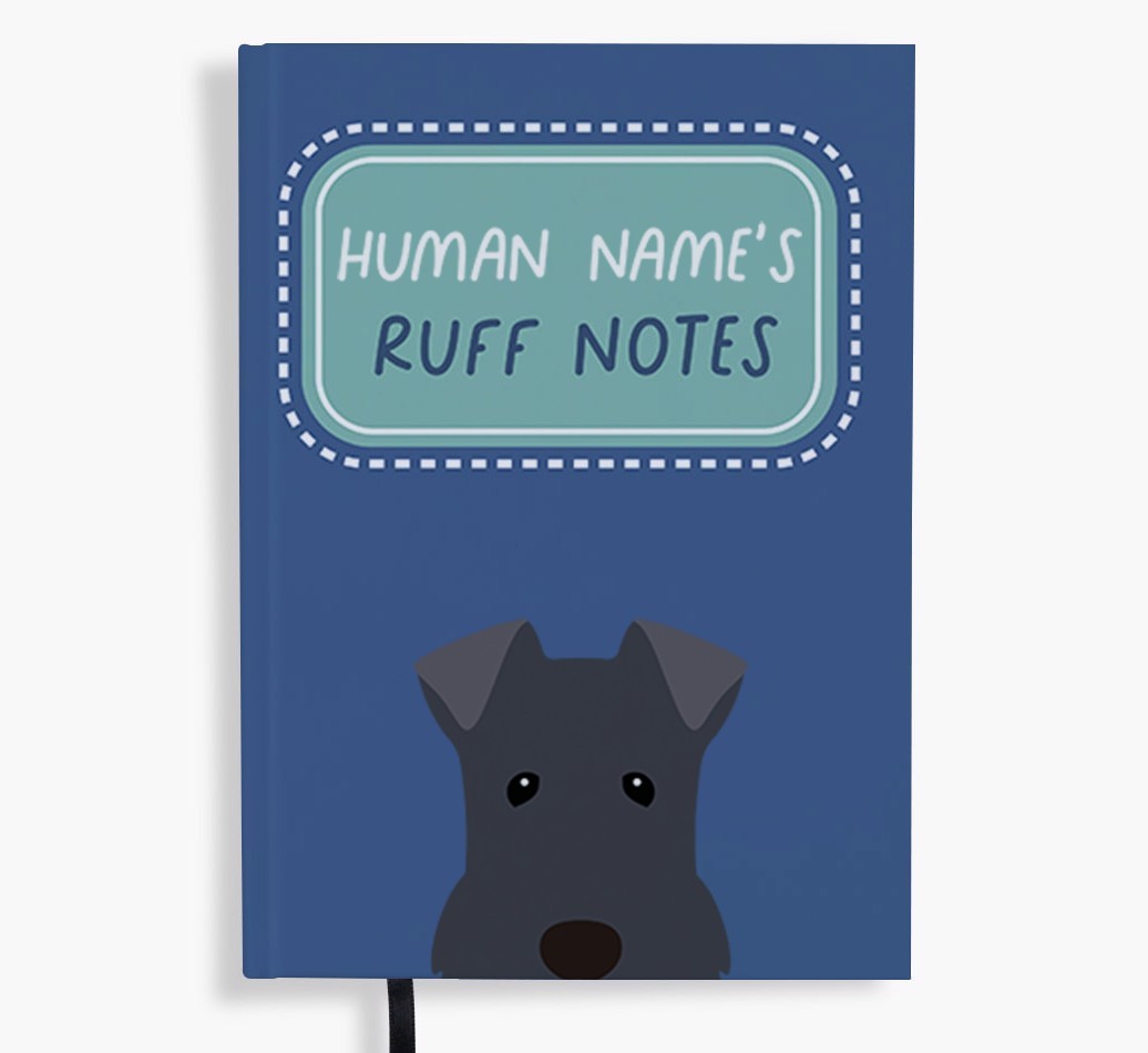 Starring Kerry Blue Terrier's cute icon and personalized with your name, this vibrant notebook may be a place for your ruff notes, but the cover will always look wagnificent!