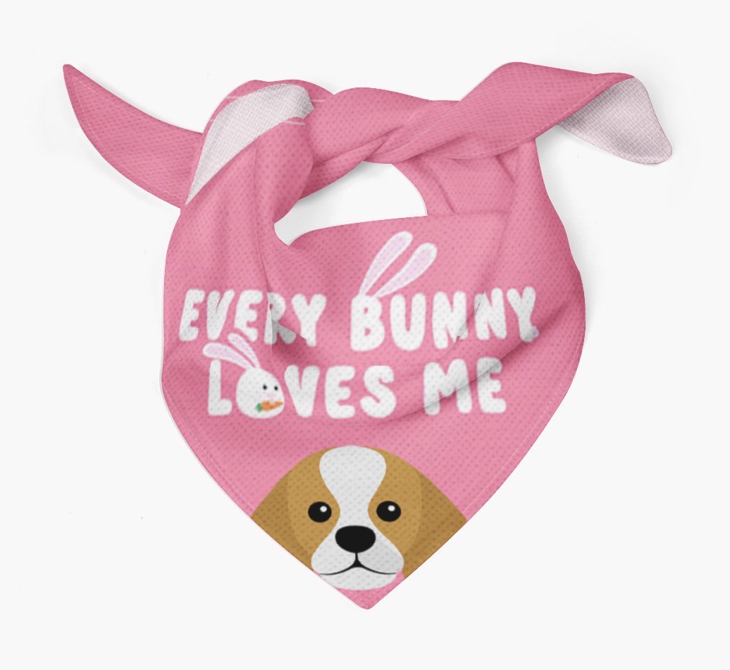 Tailored with the fabulous saying: 'Every Bunny Loves Me', this bandana is the perfect addition to your King Charles Spaniel's wardrobe! Available in four egg-ceptional colors and personalized with your King Charles Spaniel's icon, this is the perfect pawchase for Easter!
