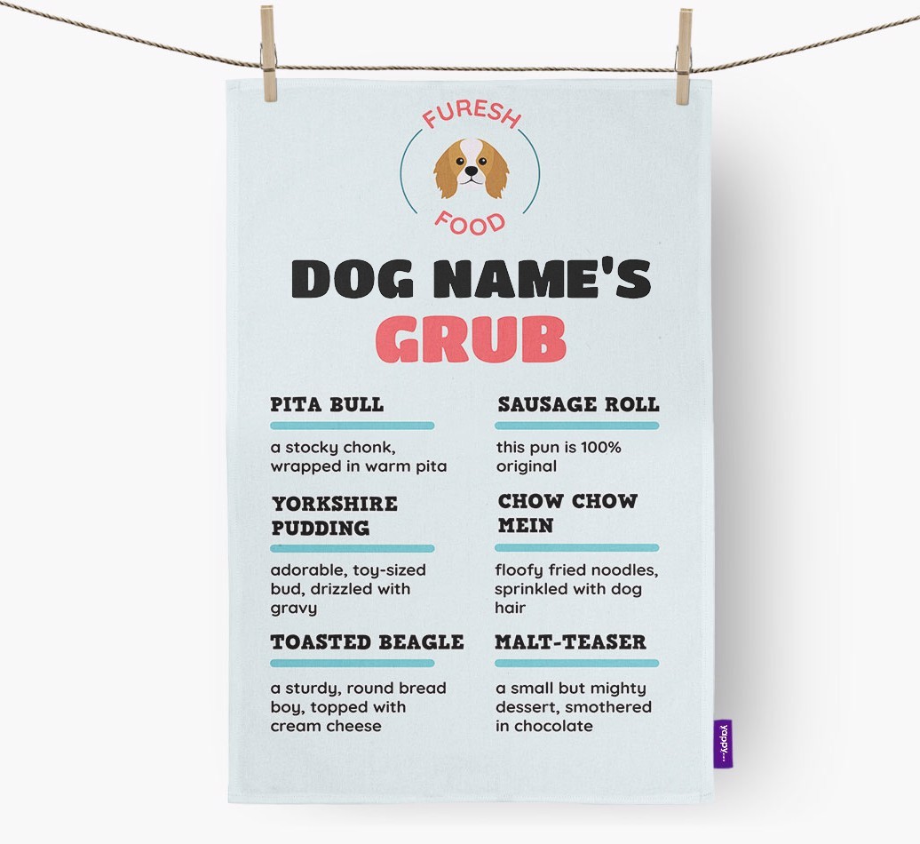 Personalized with King Charles Spaniel's name and their pawsome icon, this dish towel adds canine charm to the kitchen and is destined to make you smile (even when it's time to do the dishes).