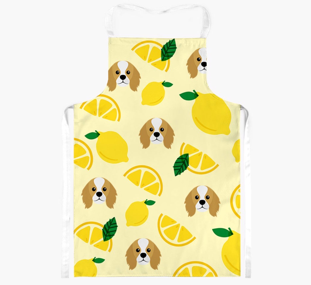 Fruity and fabulous, this apron is extra special as it features your King Charles Spaniel!