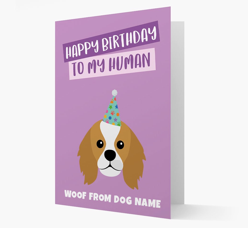 'Happy Birthday to My Human' - Personalized King Charles Spaniel Card