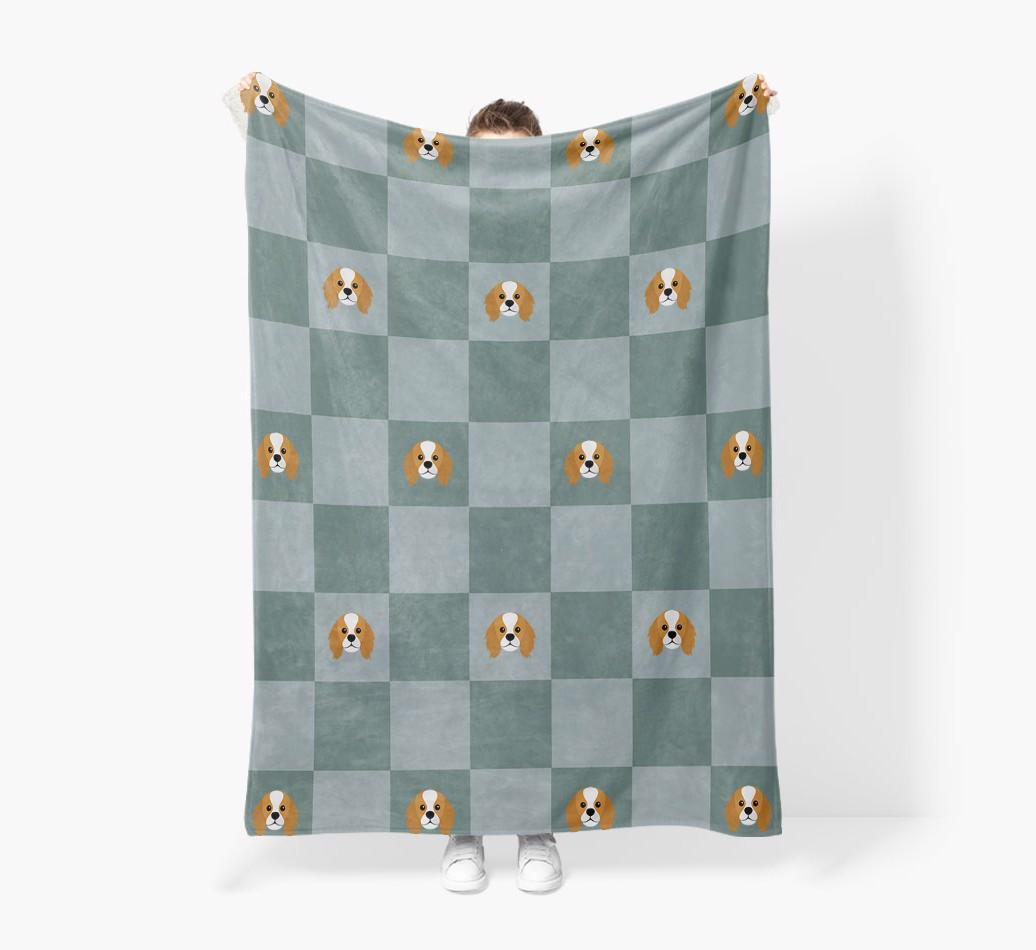 'Checkboard' - Personalized King Charles Spaniel Blanket: Premium Sherpa Fleece