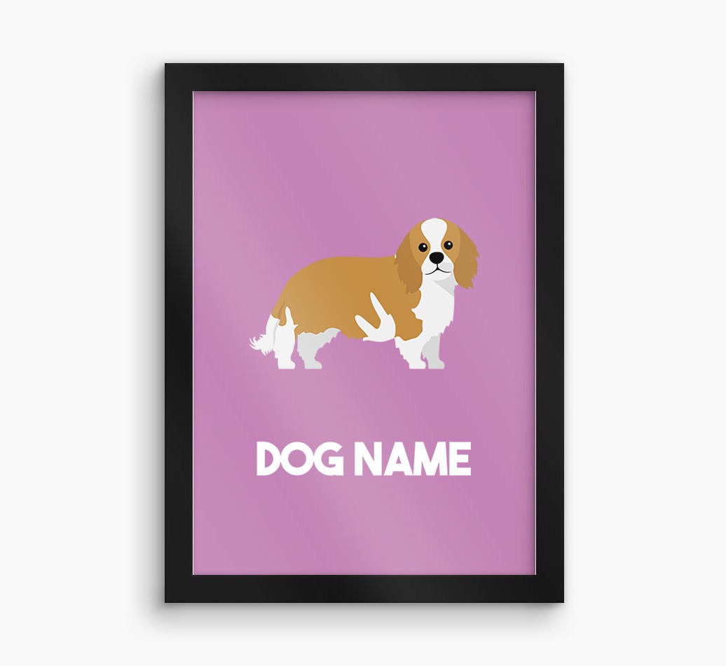 Personalized with King Charles Spaniel's name and icon, this print is available in a range of colors to suit your personal style. This woofly artwork is the perfect way to add a pop of colour and plenty of pawsonality to any room!