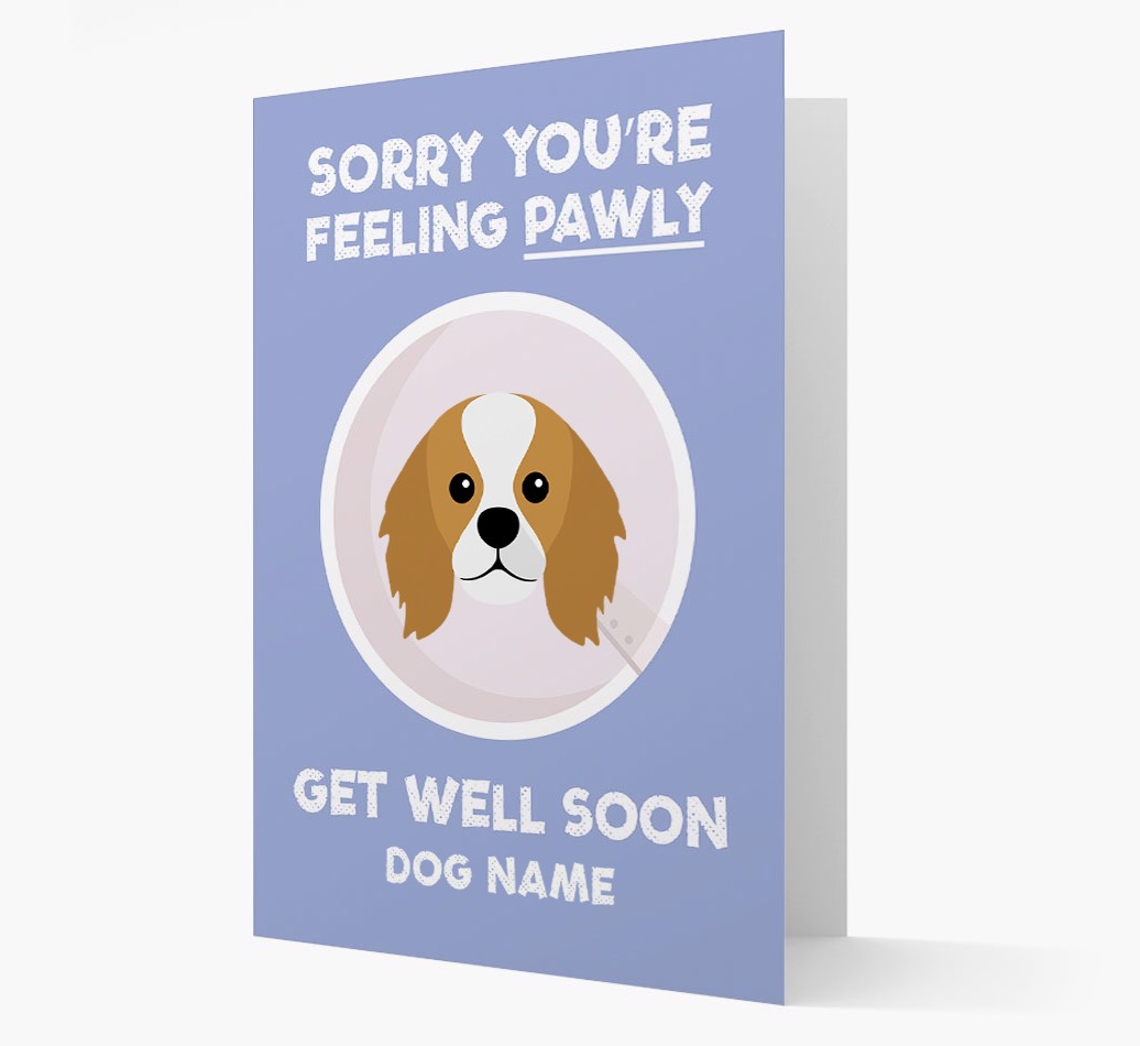 'Sorry You're Feeling Pawly' - Personalized King Charles Spaniel Get Well Soon Card