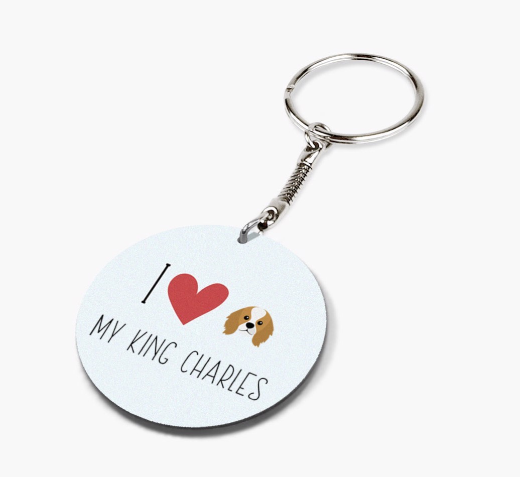 'I Heart My King Charles' - Personalized Double-sided keychain with King Charles Spaniel Icon