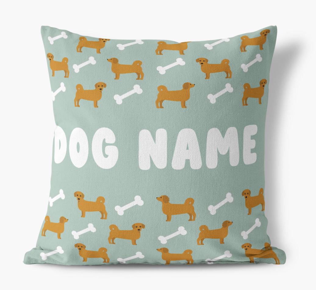 Personalized with Kokoni’s name against a background of Kokoni icons and bones, this gorgeous pillow is full of pawsonality.