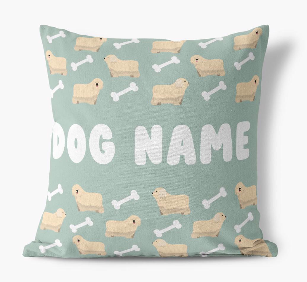 Personalized with Komondor’s name against a background of Komondor icons and bones, this gorgeous pillow is full of pawsonality.