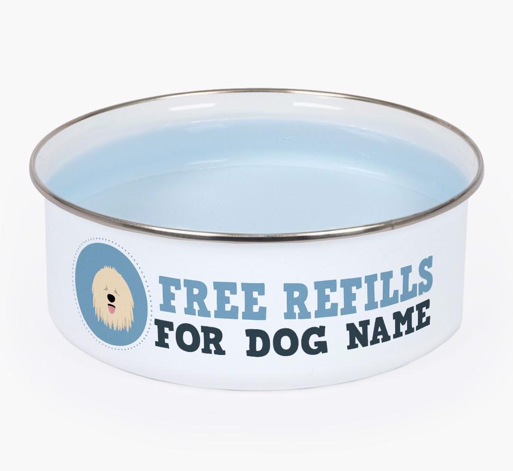 Personalized with Komondor's name and icon, this enamel bowl is available in a choice of colors and sizes, so can make your pup's water bowl truly their own. It's complete with a travel lid, ideal for water refills when you're out and about.