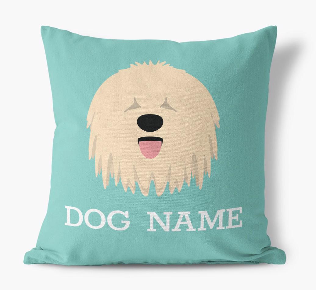 This Yappy exclusive canvas pillow features a large Komondor icon and it's personalized with your beloved dog's name to make it extra special.