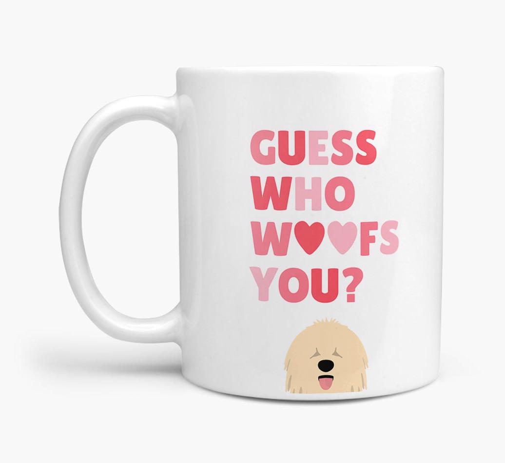 Personalized with Komondor's cute face, this adorable mug is perfect for showing off the one who "woofs" you - how sweet!