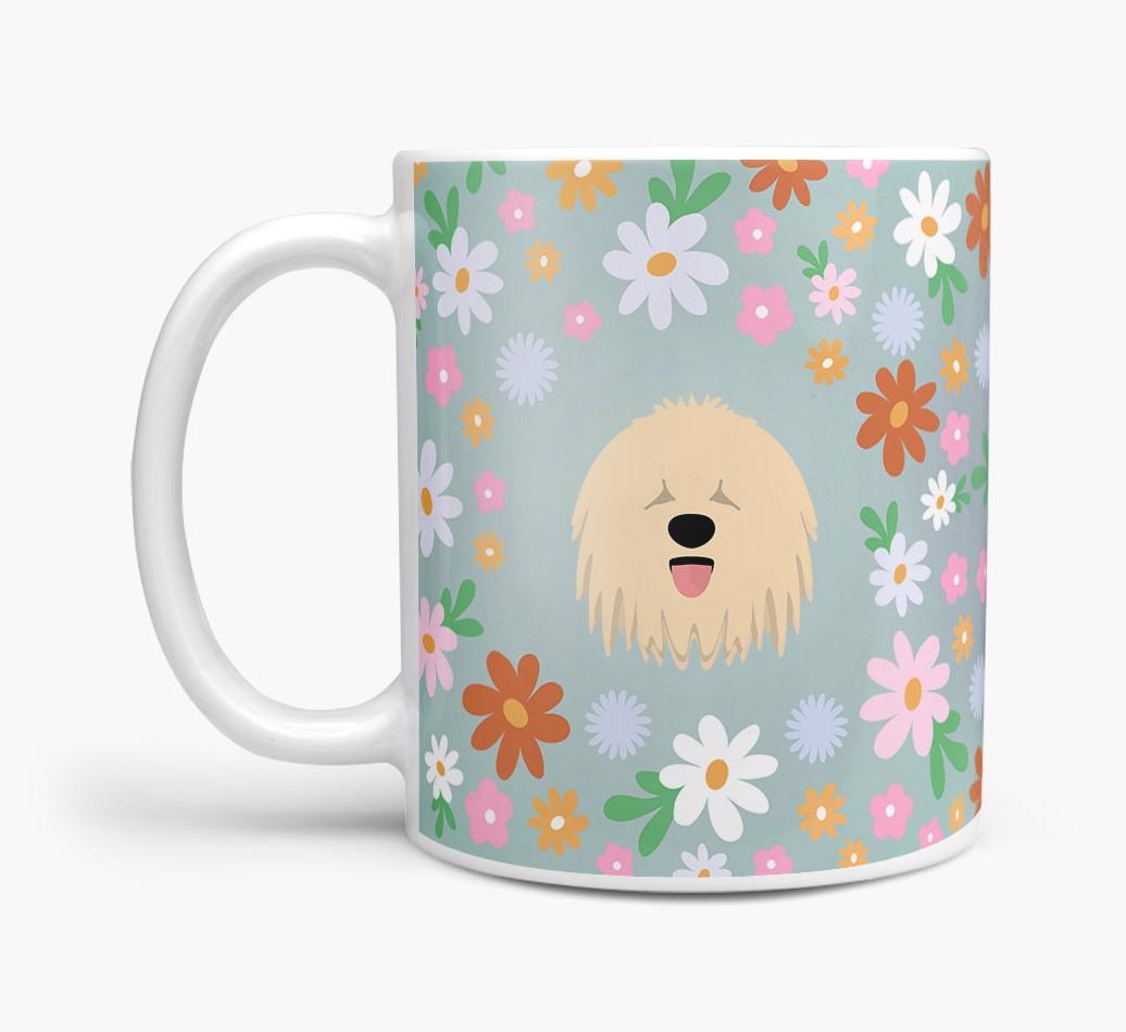 Featuring a colorful bunch of flowers, this mug is printed with the words 'woofly grandma' on one side of the mug and your Komondor's cute icon on the other. Bloomin' lovely!