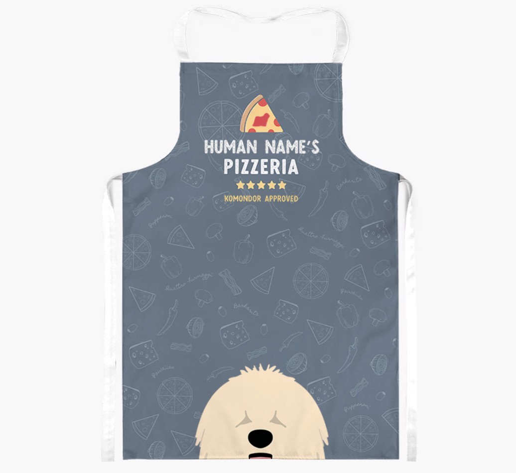 Featuring your furry friend's icon and lick of approval, plus your chosen human name, this apron is pawfect for anyone who considers themselves a pizza maestro in the kitchen. Available in a choice of 5 rustic colors, it'll make any Komondor lover happy.