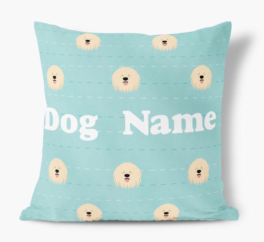Featuring a furbulous Komondor icon pattern, this pillow is available in six chic color-ways and is personalized with Your Komondor's name.
