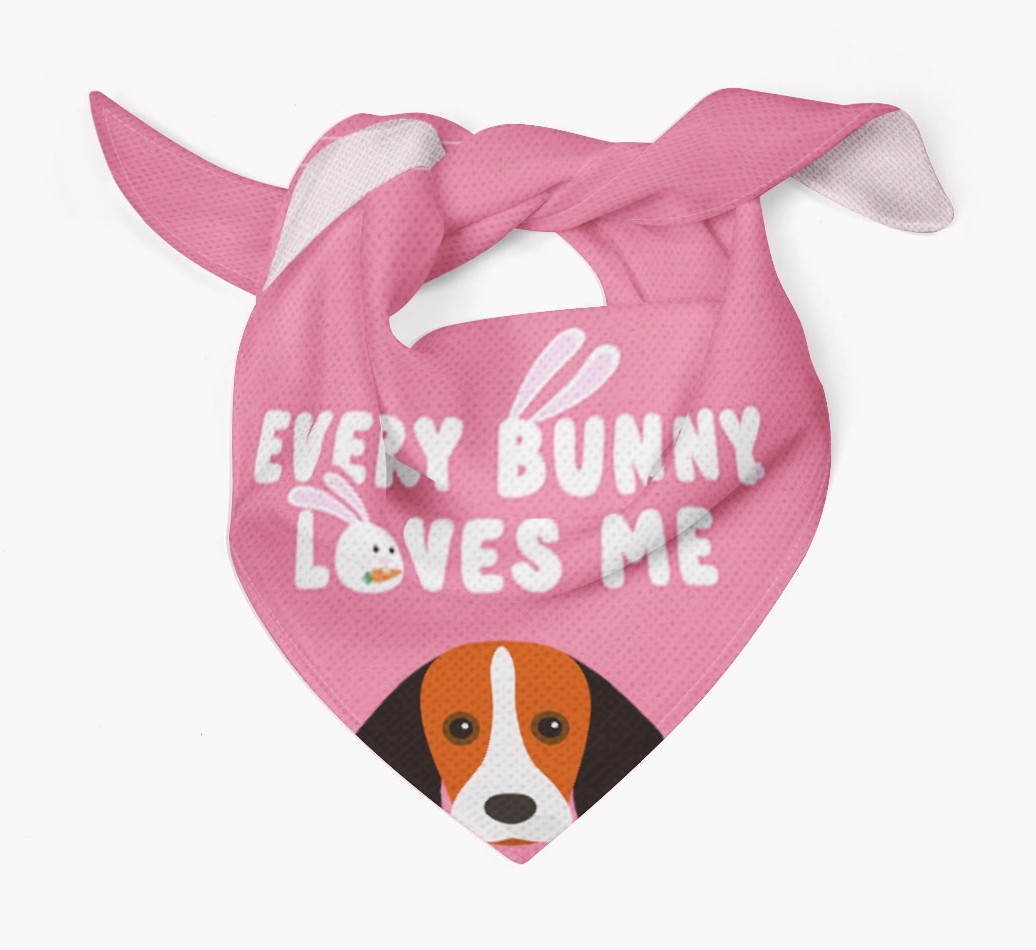 Tailored with the fabulous saying: 'Every Bunny Loves Me', this bandana is the perfect addition to your Kooikerhondje's wardrobe! Available in four egg-ceptional colors and personalized with your Kooikerhondje's icon, this is the perfect pawchase for Easter!