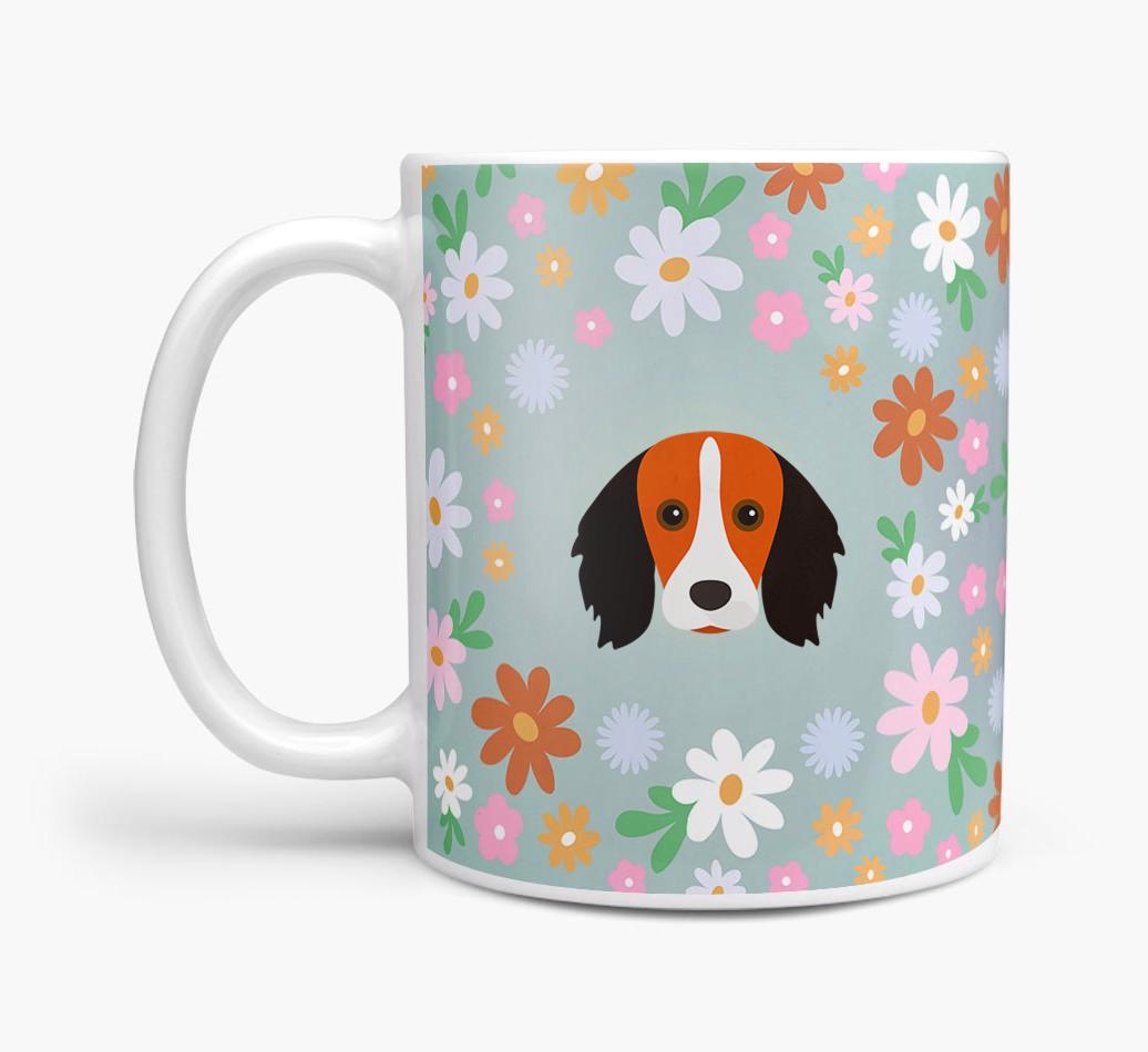 Featuring a colorful bunch of flowers, this mug is printed with the words 'woofly grandma' on one side of the mug and your Kooiker's cute icon on the other. Bloomin' lovely!