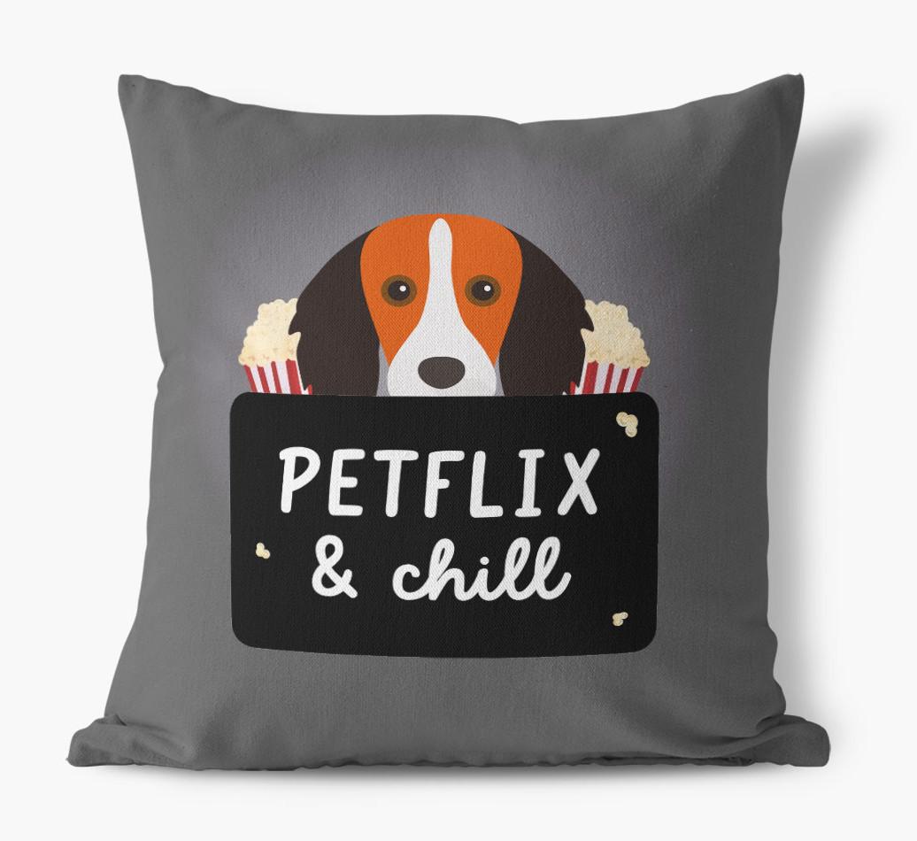 Personalized with your Kooikerhondje's icon and available in six furbulous colours, this pillow will remind you that anytime is petflix and chill time!