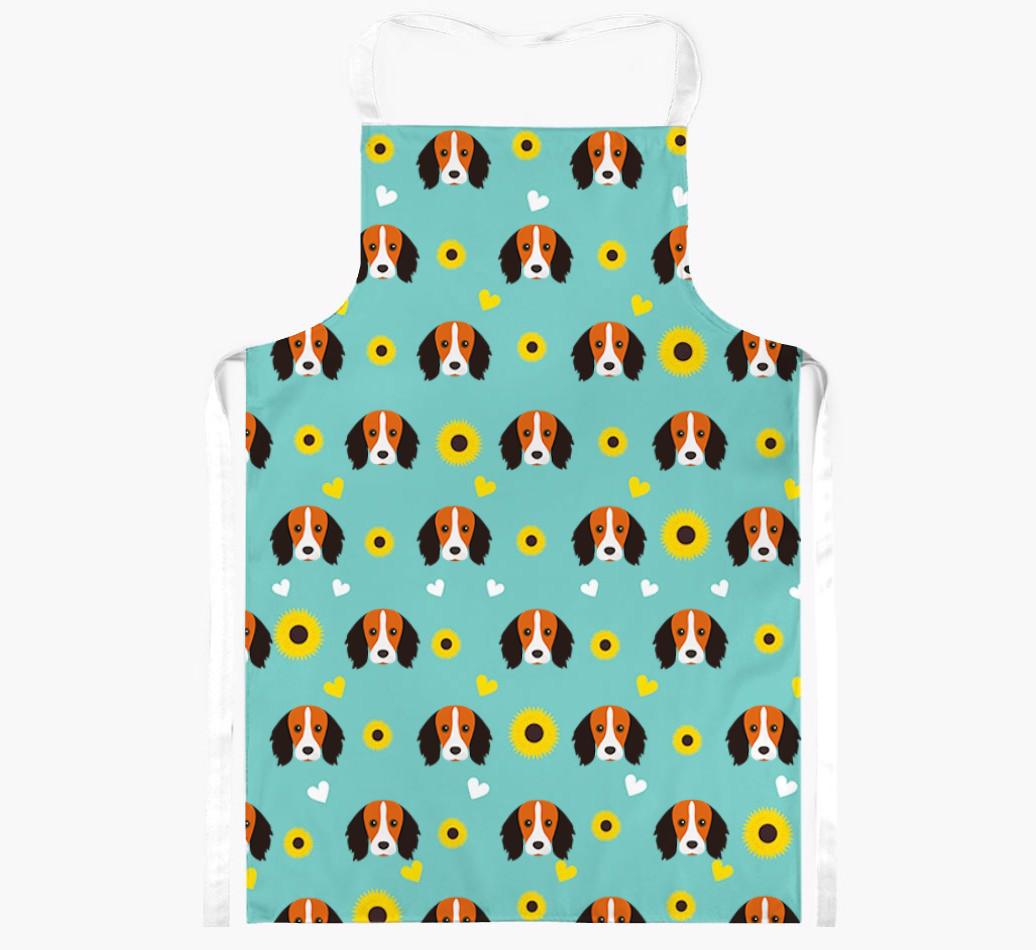 This apron has a delightful sunflower and heart pattern, and best of all - it's personalized with Kooikerhondje's face too! This cute and colorful apron is sure to put a smile on every dog lover's face.