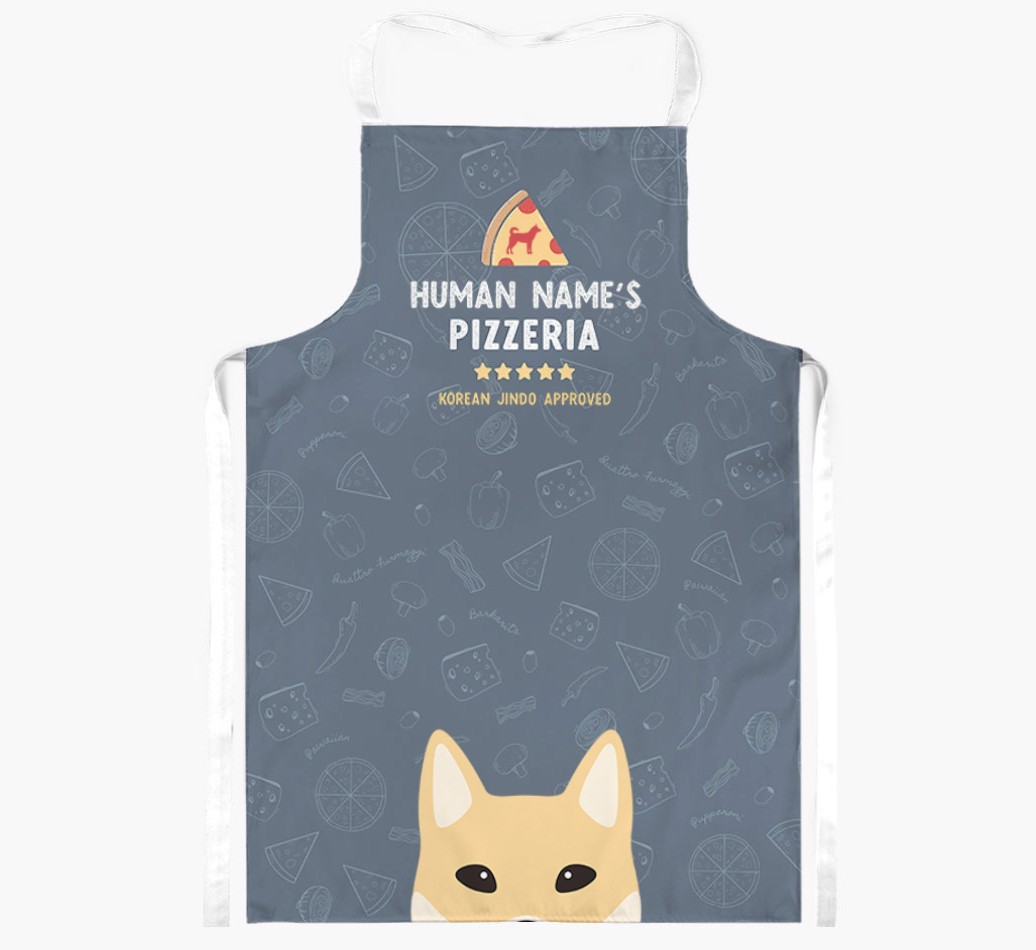 Featuring your furry friend's icon and lick of approval, plus your chosen human name, this apron is pawfect for anyone who considers themselves a pizza maestro in the kitchen. Available in a choice of 5 rustic colors, it'll make any Jindo lover happy.