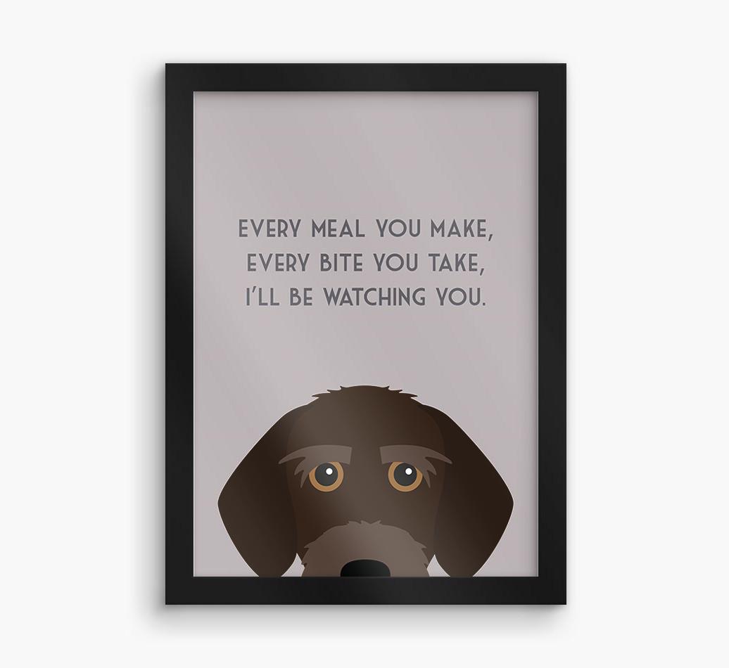 Printed with the words, ‘Every meal you make, every bite you take, I’ll be watching you’ and complete with our cute Korthals peeking from the bottom of the design, this artwork will look great on display in the kitchen or anywhere Korthals Griffon likes to watch you eat!