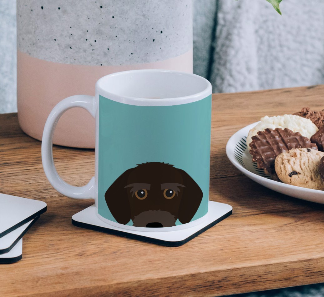 Enjoy the perfect coffee break with a mug that stars your furry friend! Featuring a Yappy.com exclusive Korthals Griffon peeking icon, this pawgeous mug will look at home in any dog lover's kitchen and we're pretty sure Korthals Griffon will be a fan too.