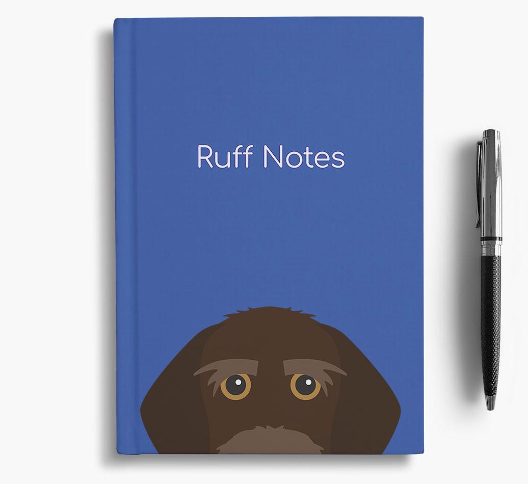 The front cover features our exclusive Korthals Griffon peeking icon and is printed with the words, ‘Ruff Notes’, whilst the back is printed with the words ‘Live. Laugh. Woof.’.