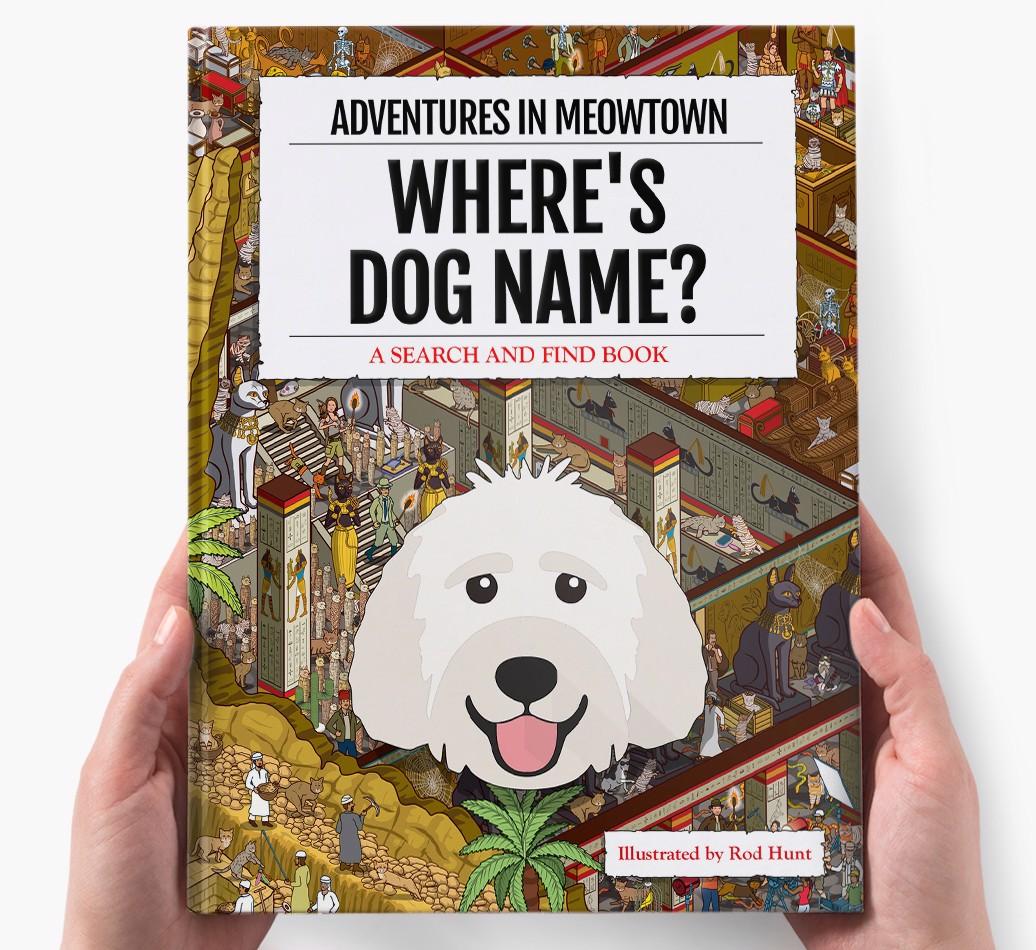 Get ready to unleash your inner detective with our popular Search & Find book, ‘Where’s (insert dog name)?’ It’s the personalized dog book everyone’s yapping about! With twelve beautifully illustrated locations to explore, we challenge you to find your adventurous {breedShortName} on each action-packed page. Can you spot all the canine cameos and funny parodies too?