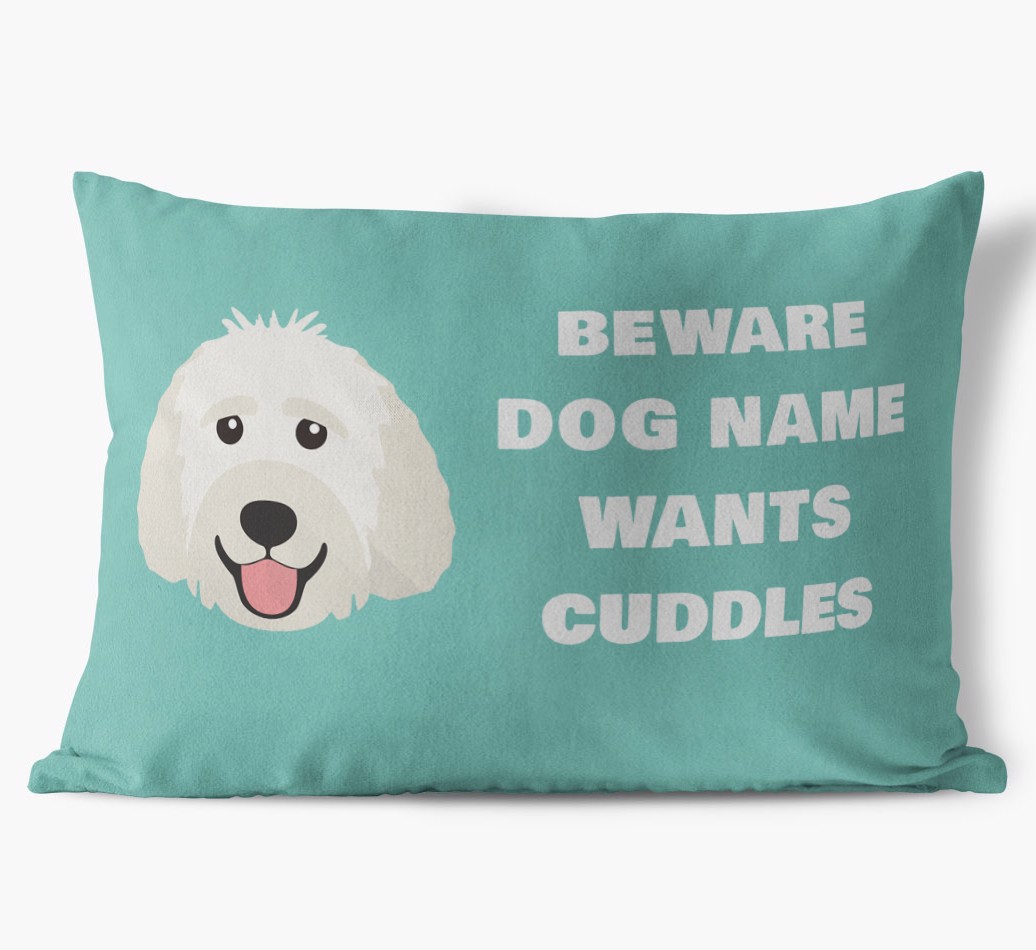 Beware of Cuddles: Personalized Labradoodle Soft Touch Pillow