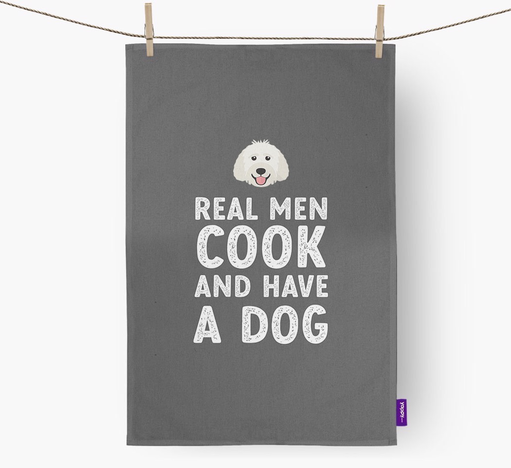 Real Men Cook And Have A Dog: Personalized Labradoodle Dish Towel