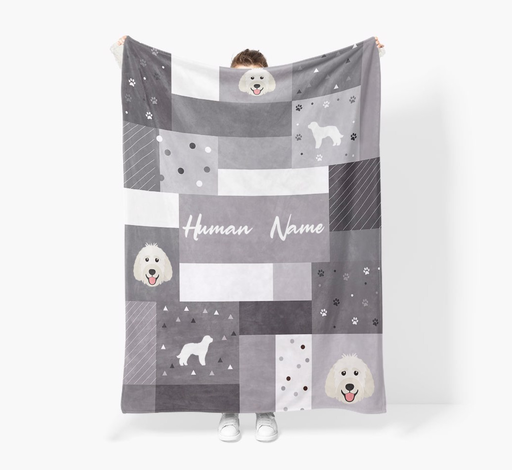Patchwork: Personalized Labradoodle Premium Sherpa Fleece Blanket
