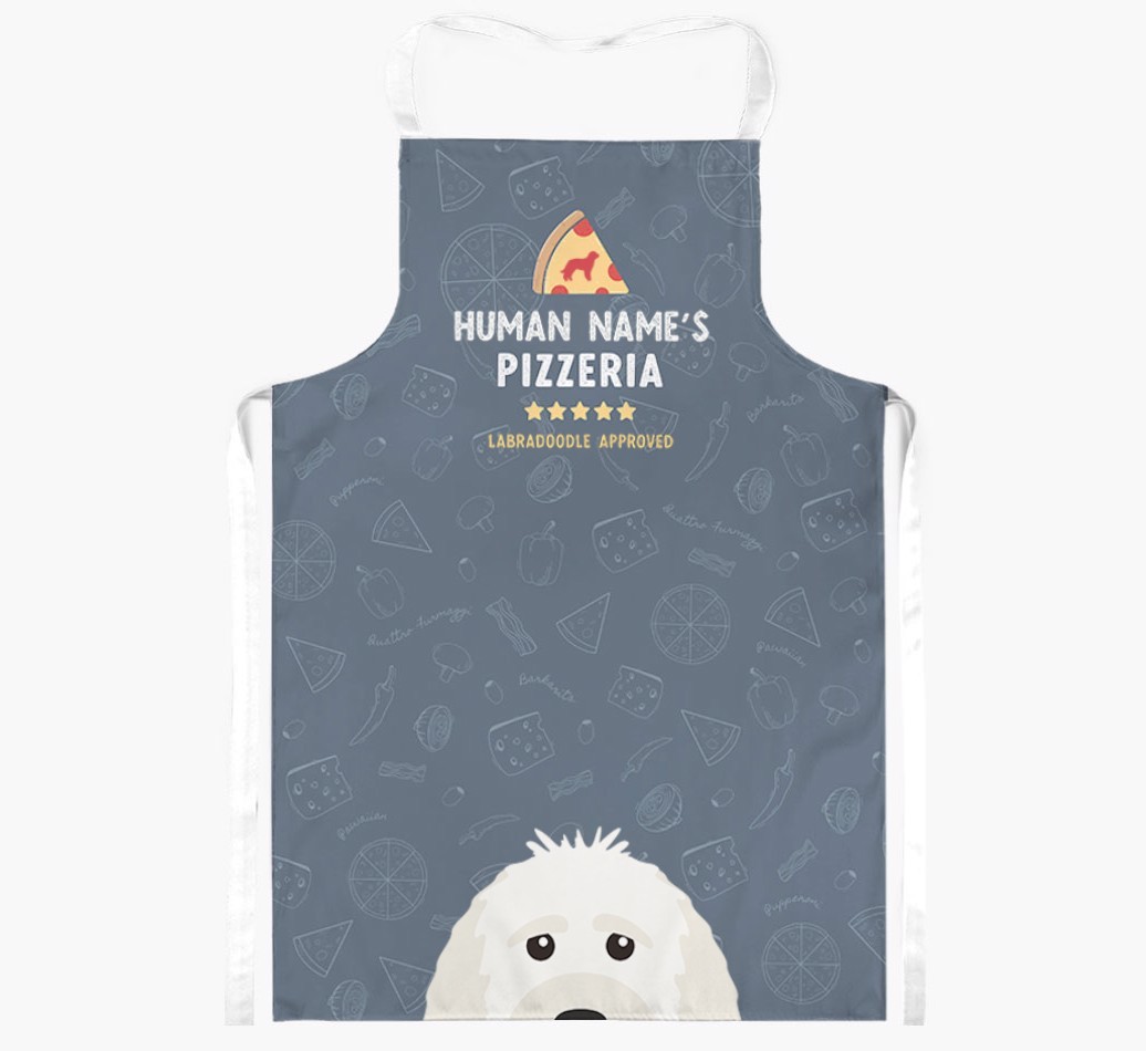 Featuring your furry friend's icon and lick of approval, plus your chosen human name, this apron is pawfect for anyone who considers themselves a pizza maestro in the kitchen. Available in a choice of 5 rustic colors, it'll make any Labradoodle lover happy.
