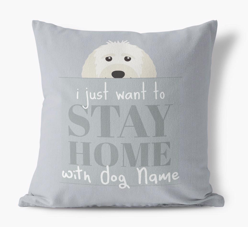 Stay Home: Personalized Labradoodle Canvas Pillow