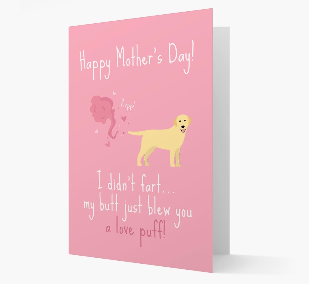 Make her laugh this Mother's Day with a funny card from Labrador Retriever. Because what could be better than receiving a "love puff" from her Labrador Retriever!