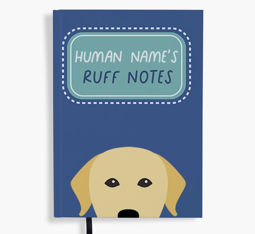 Starring Labrador Retriever's cute icon and personalized with your name, this vibrant notebook may be a place for your ruff notes, but the cover will always look wagnificent!