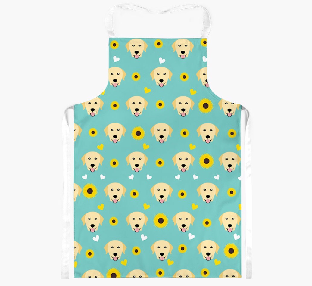 This apron has a delightful sunflower and heart pattern, and best of all - it's personalized with Labrador Retriever's face too! This cute and colorful apron is sure to put a smile on every dog lover's face.