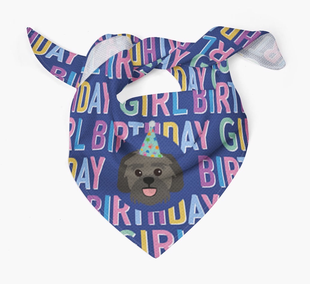 Featuring a text pattern that reads 'birthay girl' and personalized with Lachon's cute icon (complete with a fun party hat), your Lachon will look simply pawgeous on their special day when they're wearing this bandana.