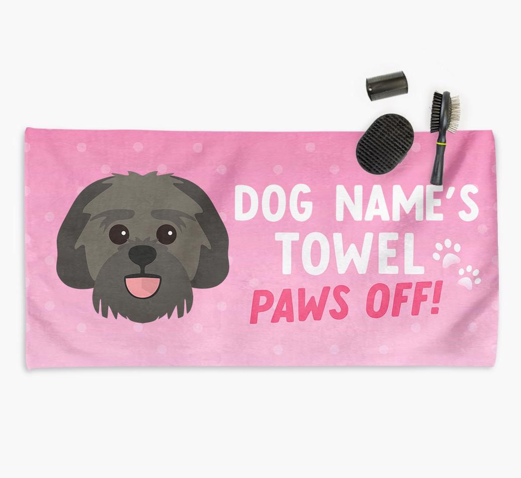 Perfect for messy pups and for pampering your Lachon at bathtime, this soft and absorbent towel is made for cleaning your mucky pup and drying them off in a flash. It's personalized with Lachon's name and icon and is printed with a message for everyone else to keep their paws off it!