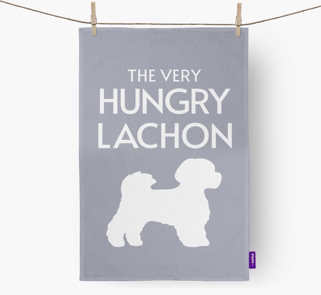 Let everyone know you’ve got a very hungry Lachon on your hands with this stylish dish towel!