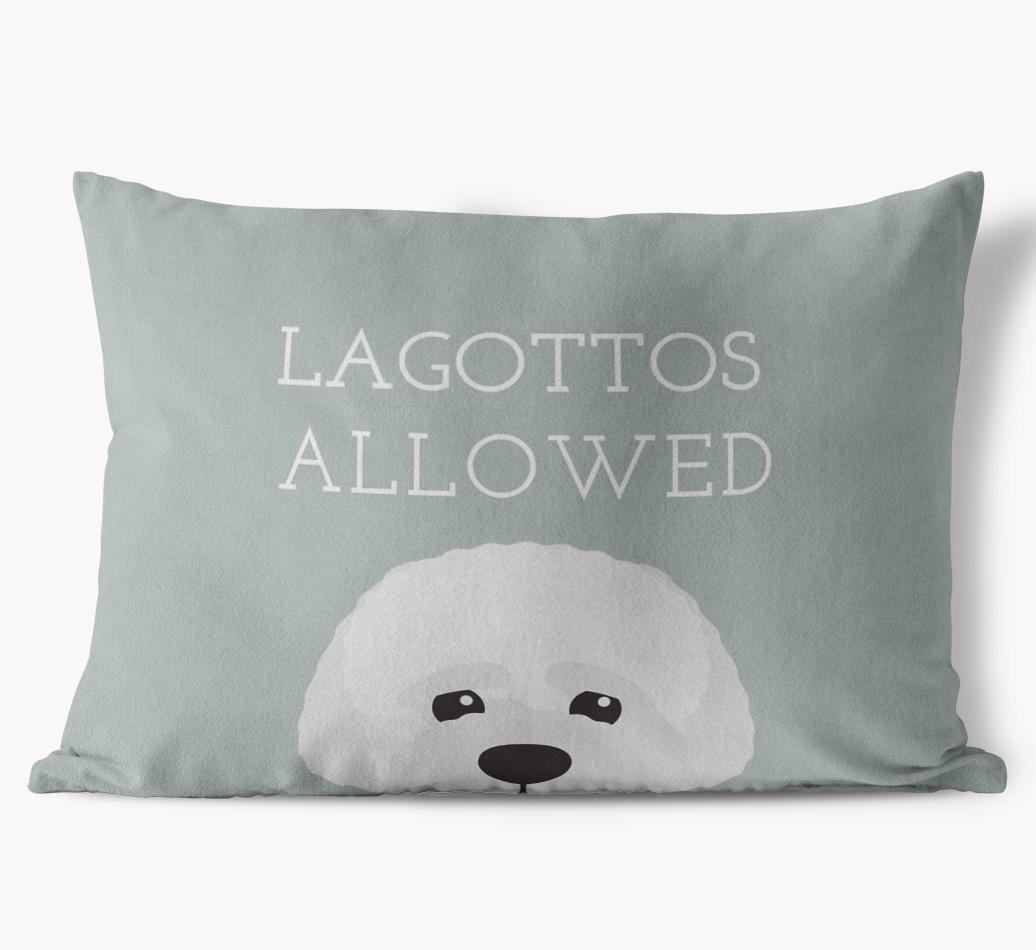 This exclusive, luxurious pillow is printed with the words ‘Lagottos Allowed’, which I’m sure Your Lagotto would definitely approve of.