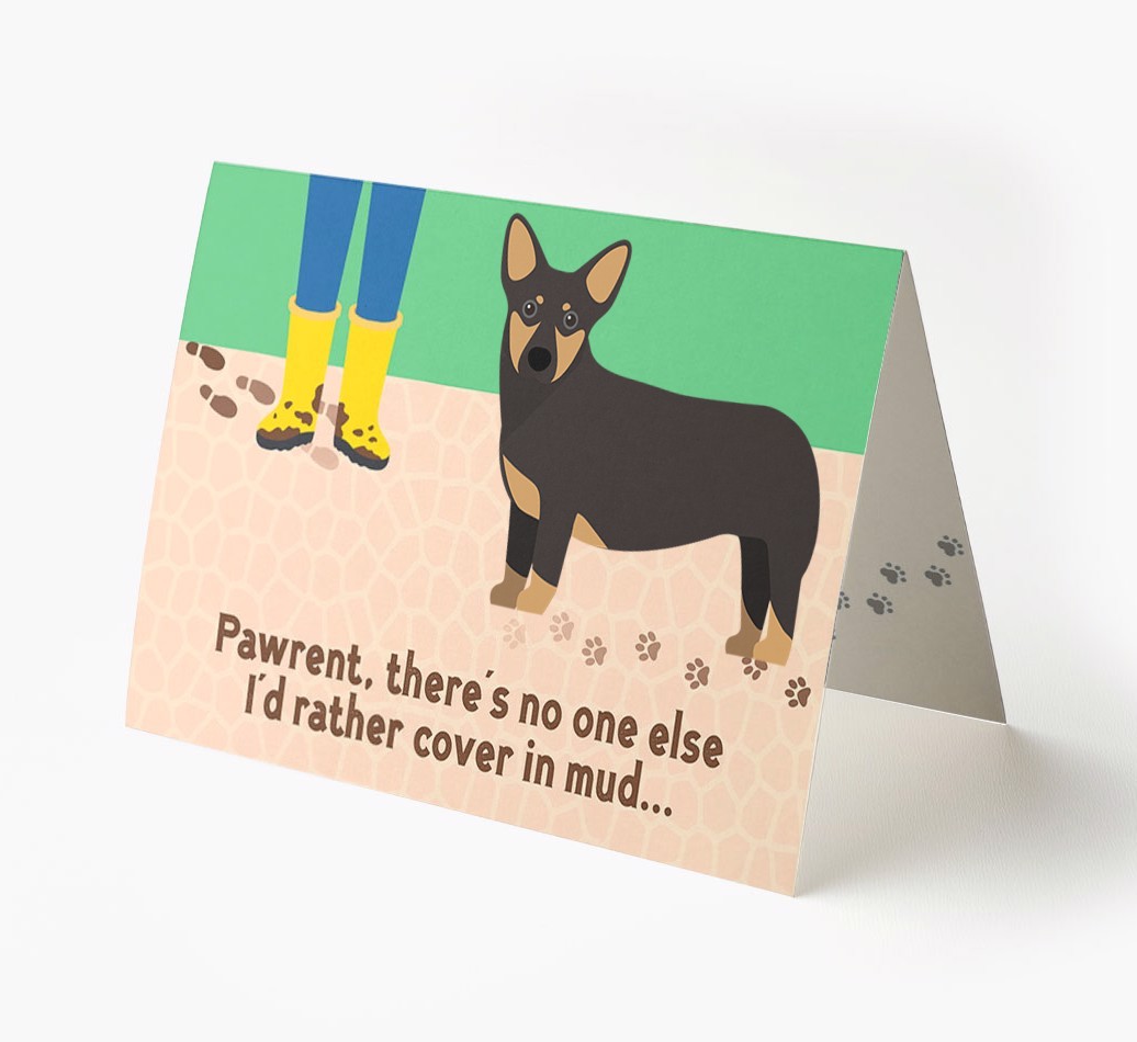 This comical card is sure to delight Lancashire Heeler's pawrent (without getting muddy), especially as it stars their Heeler's cheeky icon.