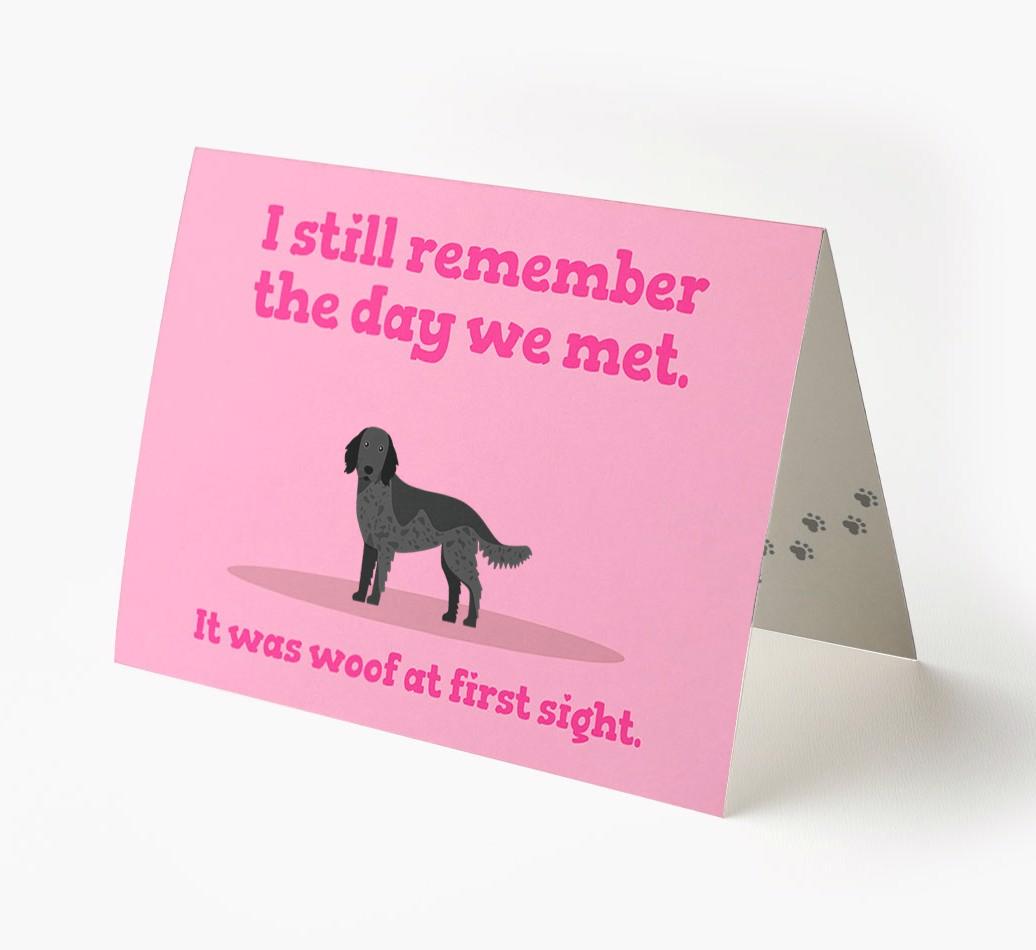 Featuring a cheeky Munsterlander, this cute card is a fun way to celebrate your love for Large Munsterlander or someone you're mutts about!