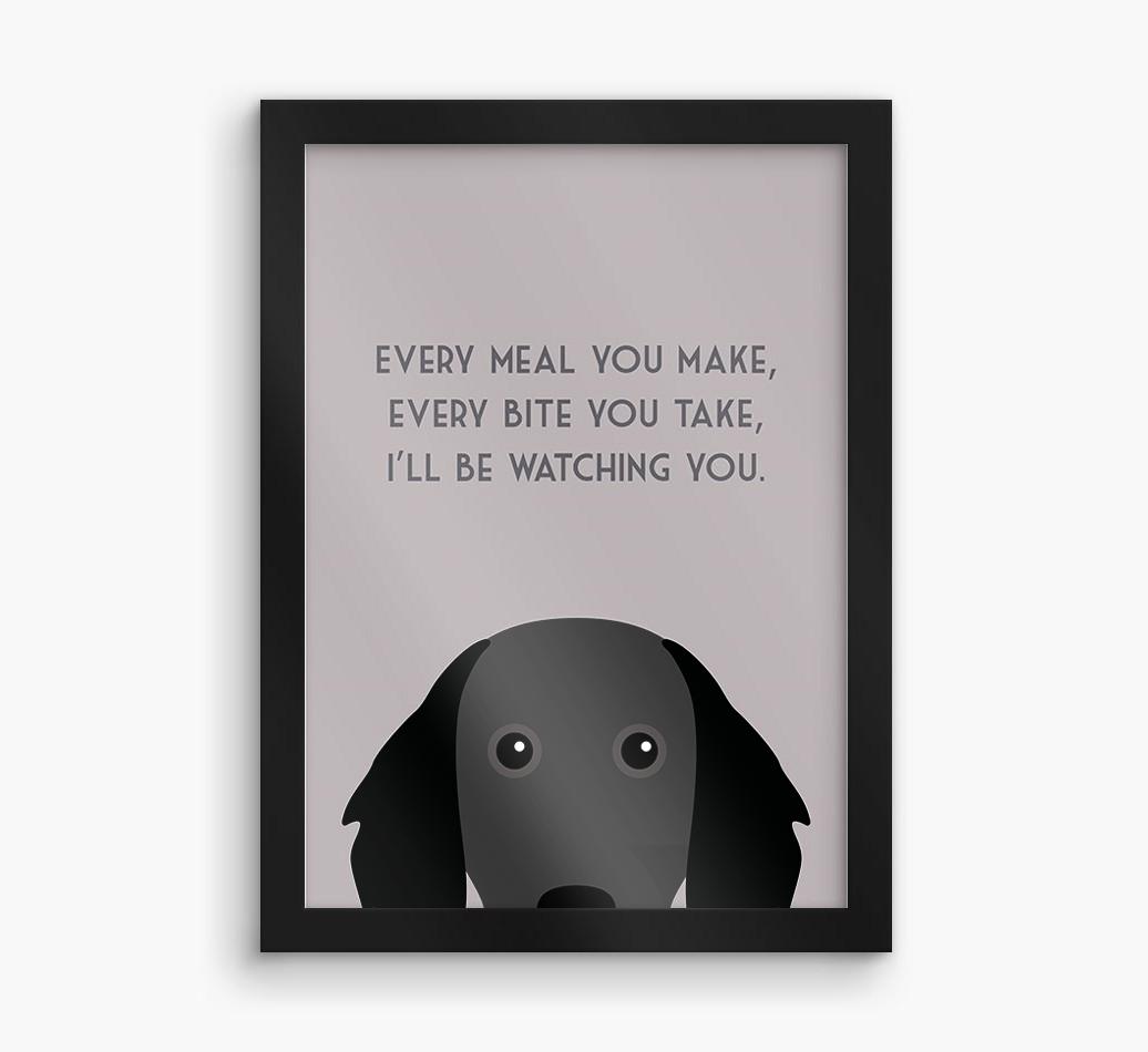 Printed with the words, ‘Every meal you make, every bite you take, I’ll be watching you’ and complete with our cute Munsterlander peeking from the bottom of the design, this artwork will look great on display in the kitchen or anywhere Large Munsterlander likes to watch you eat!