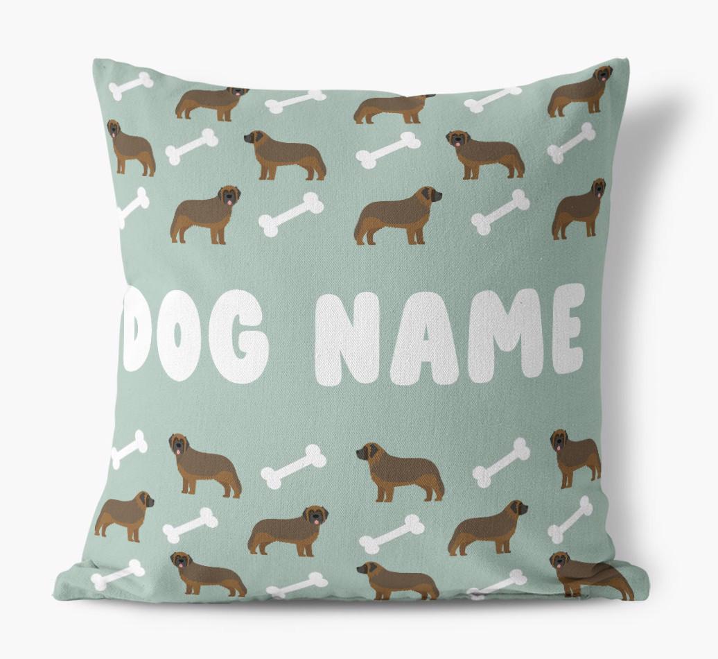Personalized with Leonberger’s name against a background of Leonberger icons and bones, this gorgeous pillow is full of pawsonality.