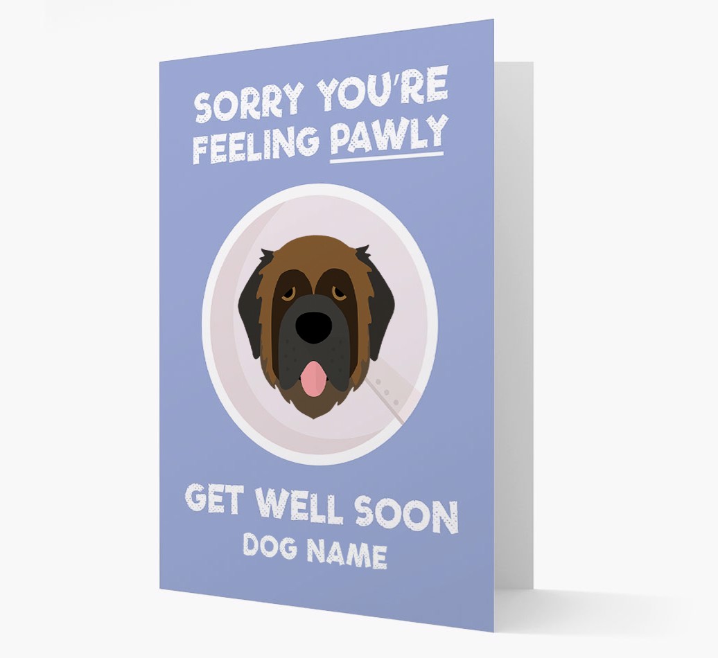 'Sorry You're Feeling Pawly' - Personalized Leonberger Get Well Soon Card