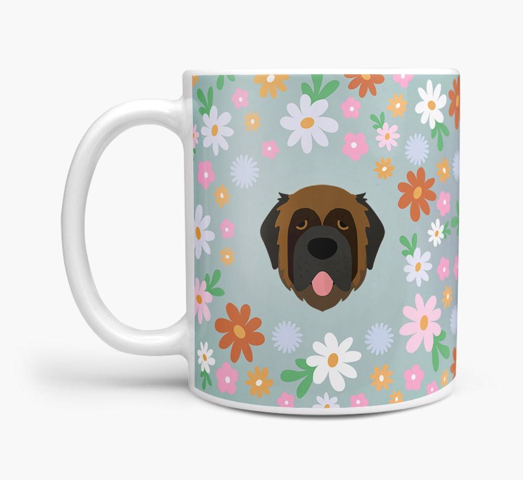 Featuring a colorful bunch of flowers, this mug is printed with the words 'woofly grandma' on one side of the mug and your Leonberger's cute icon on the other. Bloomin' lovely!