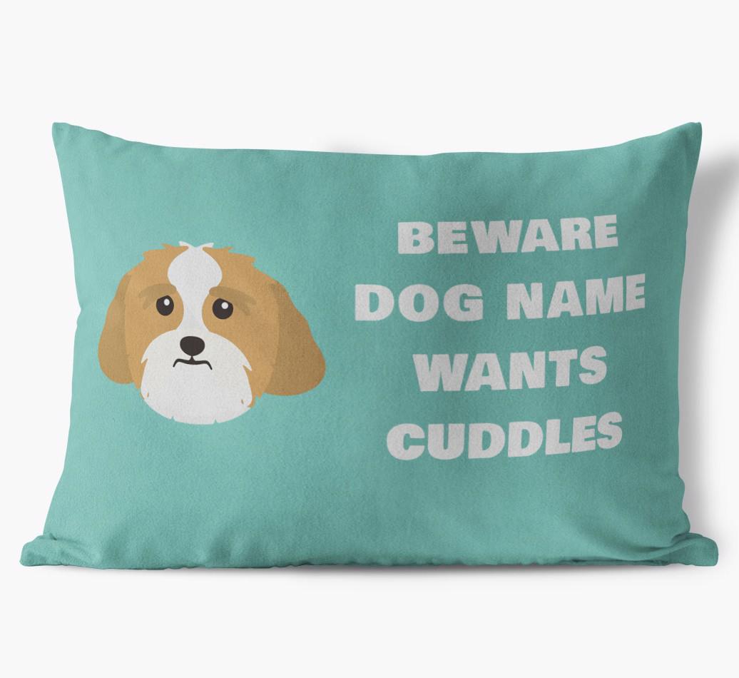 Beware of Cuddles: Personalized Lhasa Apso Soft Touch Pillow