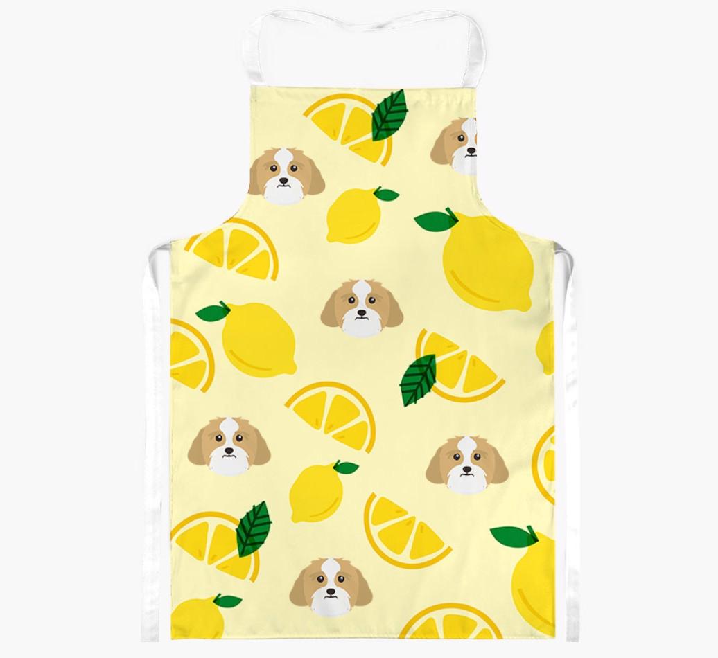 Fruity and fabulous, this apron is extra special as it features your Lhasa Apso!