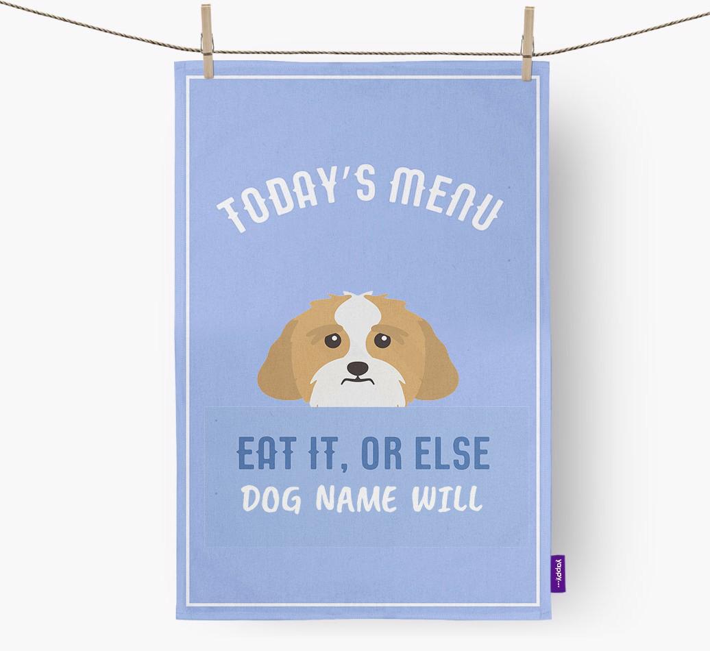 'Eat It, Or Else...' - Personalized Lhasa Apso Dish Towel
