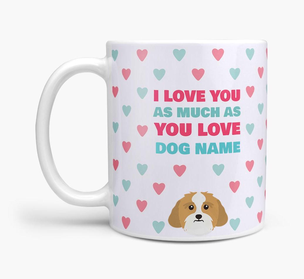 Featuring a pattern of hearts and personalized with Lhasa Apso's name and their adorable icon, this mug is sure to make the receiver feel plenty of love and warmth towards you – and that’s not just from their coffee!